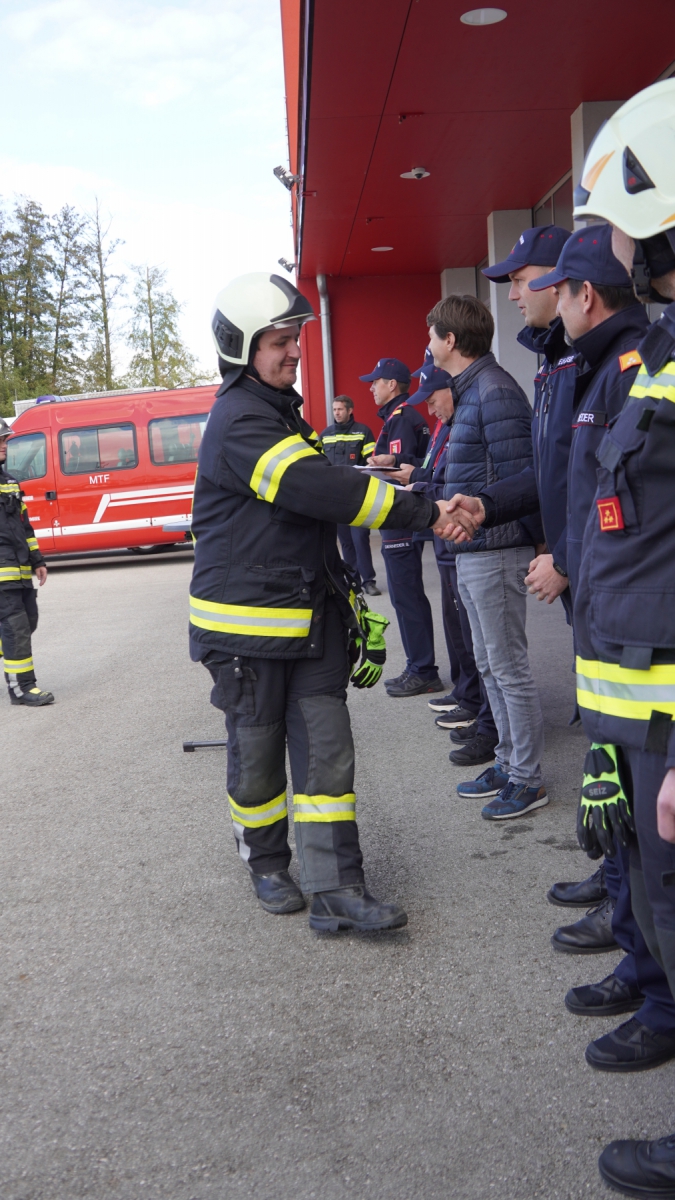 Unter den Gästen befanden sich unter anderem Bezirks-Feuerwehrkommandant Ing. Eduard Paireder sowie Vizebürgermeister Martin Peterseil von der Gemeinde Ried in der Riedmark, die den Teilnehmern zu den erfolgreichen Leistungen gratulierten und ihre Wertschätzung für das Engagement der Feuerwehrmitglieder ausdrückten.